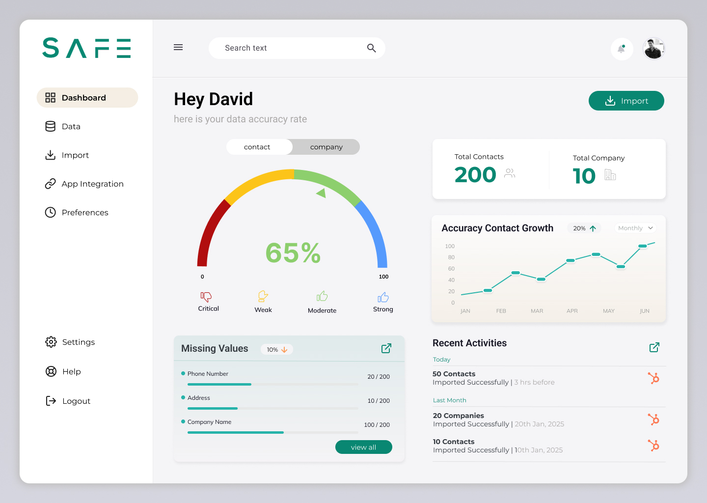 SAFE (Sync, Analyze, Fix, Enhance) is an AI-powered data cleansing solution designed to eliminate inaccuracies, standardize records, and maintain real-time data integrity across your systems. By seamlessly integrating with your CRM and marketing platforms, SAFE identifies and corrects errors, removes duplicates, enriches missing details, and detects suspicious or fraudulent profiles, so your teams can trust the data they rely on every day.